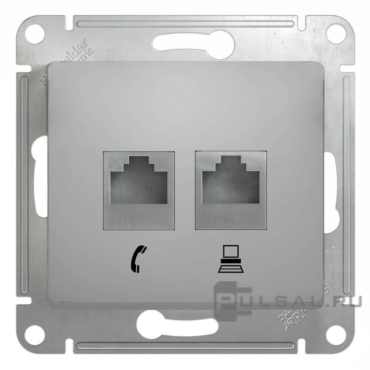 Розетка оконечная Glossa, телевизионная (TV), спутниковая (SAT), двойная, цвет - алюминий