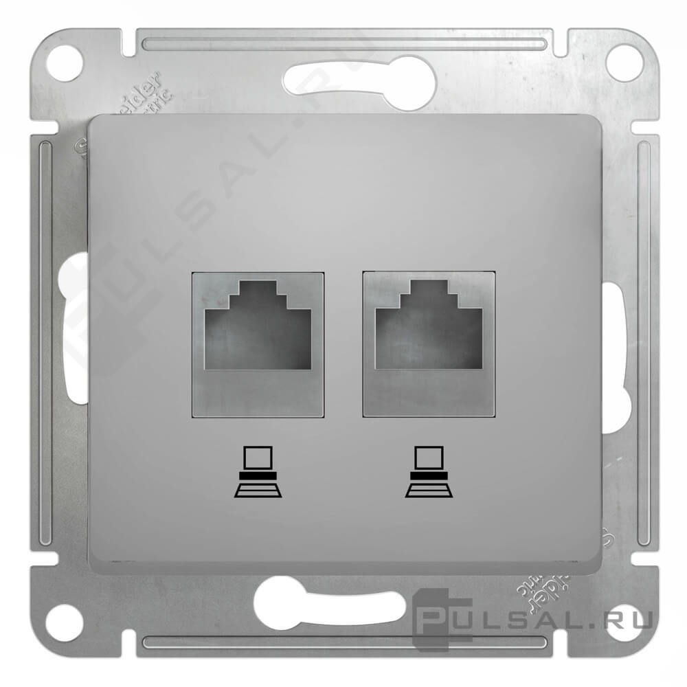Розетка оконечная Glossa, телевизионная (TV), спутниковая (SAT), двойная, цвет - алюминий