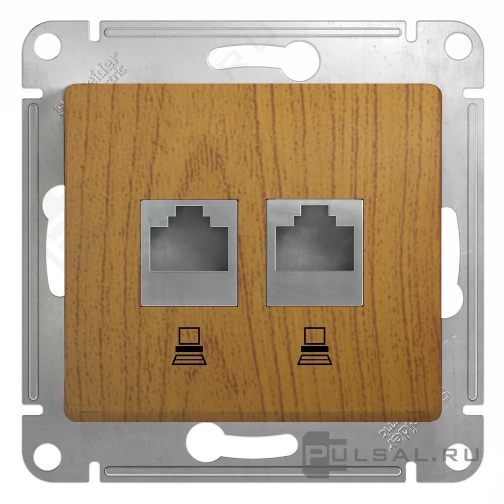 Розетка компьютерная 2 x RJ45 Cat.5e (UTP) Glossa, двойная, цвет - дуб