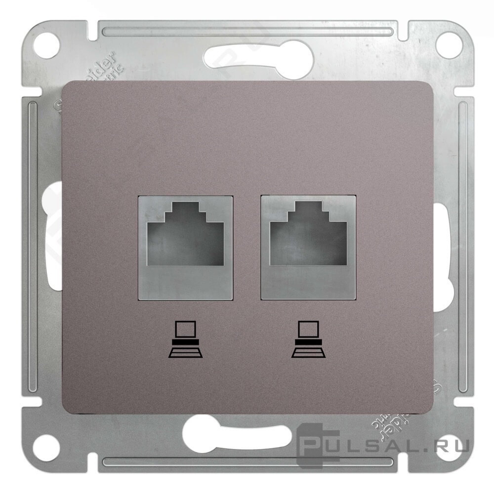 Розетка компьютерная 2 x RJ45 Cat.5e (UTP) Glossa, двойная, цвет - платина