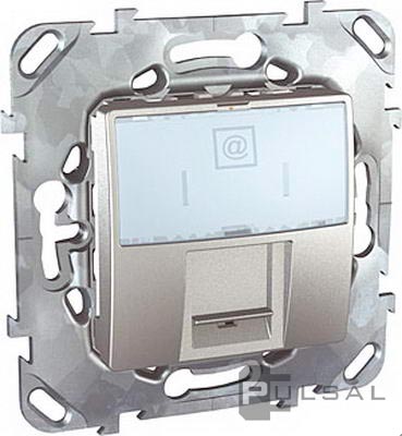 Розетка телефонная RJ11 Unica Quadro, Unica Top, Unica Class, одинарная, цвет - алюминий