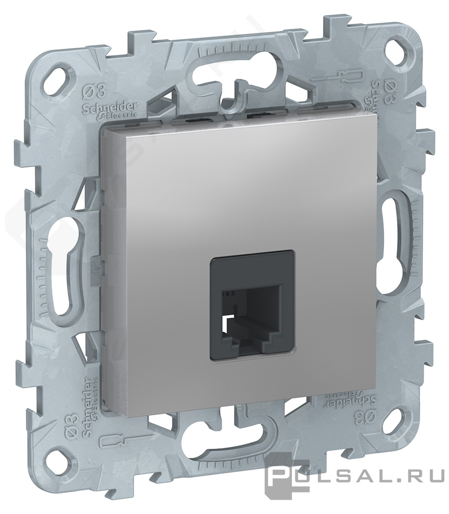 Unica New Pure, Unica New Studio, без шторок, с заземлением, одинарная, безвинтовые клеммы, цвет - алюминий