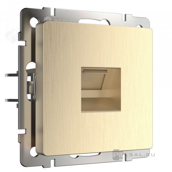Розетка Alumax, Split, Slab, Senso, Baguette, Acrylic, Platinum, Elite, Snabb, Stream, Flock, Stark, Fiore, Favorit, Diamant, Aluminium, Antik, Metallic, со шторками, с заземлением, одинарная, винтовые клеммы, цвет - шампань рифленый
