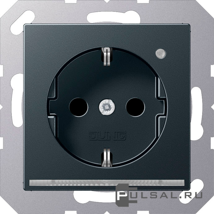 Розетка A VIVA, A creation, A 550, A flow, AS 500, со шторками, с заземлением, одинарная, безвинтовые клеммы, цвет - антрацит матовый
