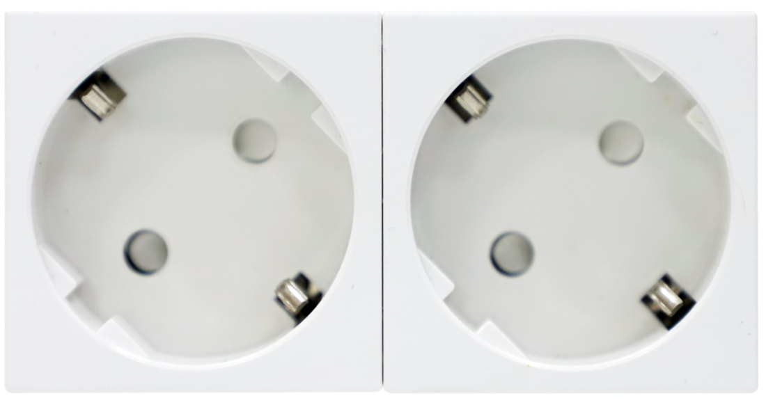 Розетка 45° Лючки DDSB, Лючки DFB, со шторками, с заземлением, двойная, безвинтовые клеммы, цвет - белый