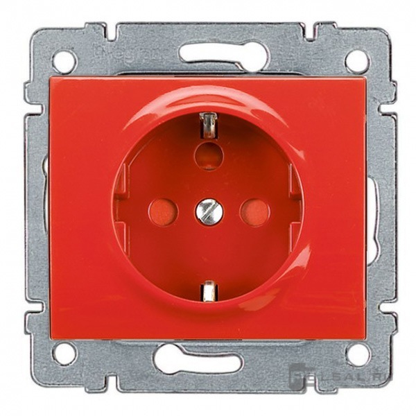 Розетка с механической блокировкой Galea Life, со шторками, с заземлением, одинарная, винтовые клеммы, цвет - красный