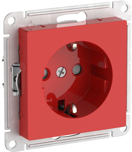 Розетка (безвинтовые клеммы) Atlas Design Antique, AtlasDesign Air, Atlas Design, со шторками, с заземлением, одинарная, безвинтовые клеммы, цвет - красный