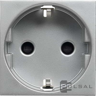 Розетка Zenit, со шторками, с заземлением, одинарная, безвинтовые клеммы, цвет - серебряный