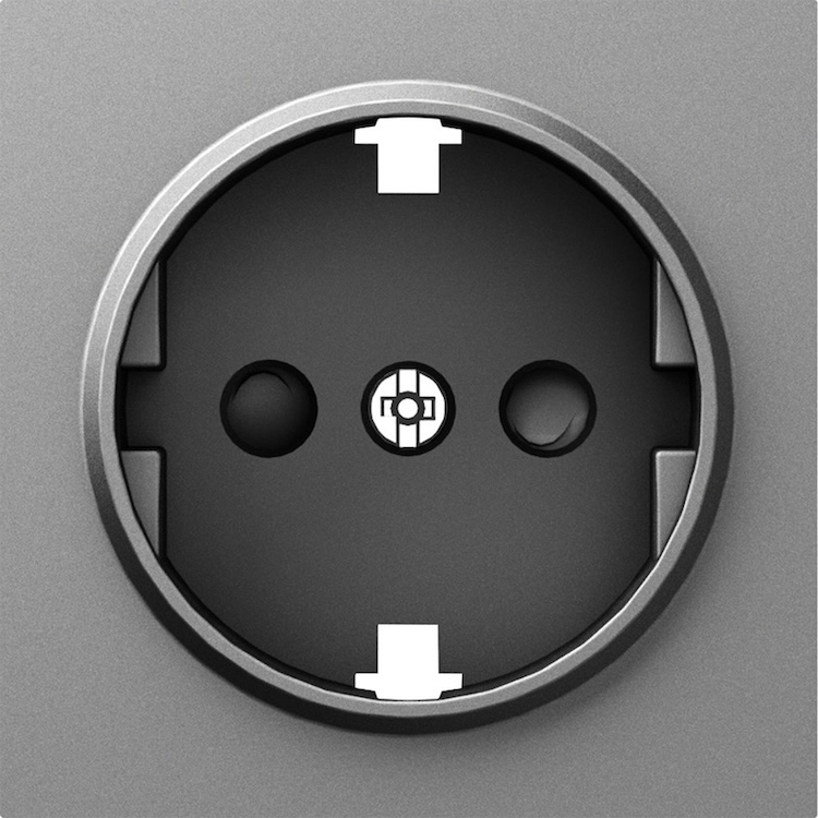 Накладка электрической розетки A07 NATURAL, A07, A07 WAVE, A07 NATURAL ROUND, со шторками, с заземлением, одинарная, цвет - сталь