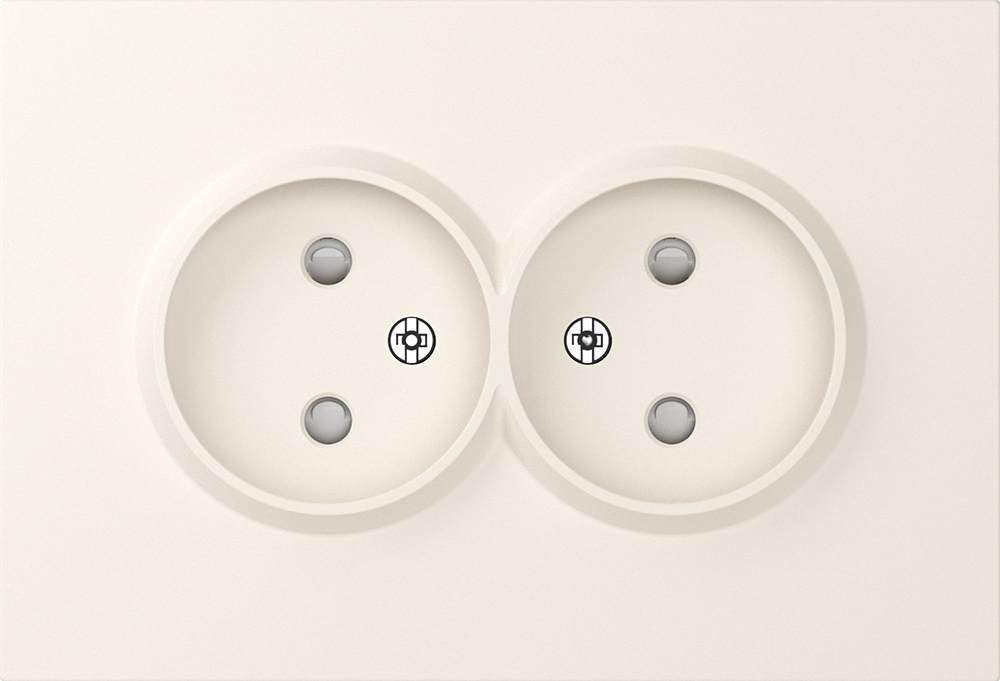 Накладка электрической розетки A07 WAVE, A07 NATURAL ROUND, со шторками, без заземления, двойная, цвет - кремовый матовый