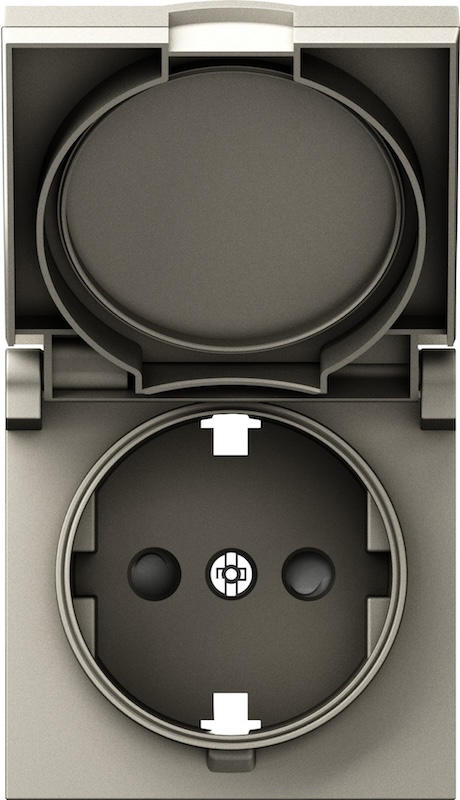 Механизм розетки A07 NATURAL, A07, A07 WAVE, S08, со шторками, с крышкой, с заземлением, одинарная, винтовые клеммы