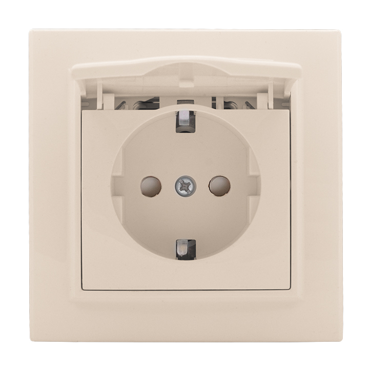 Минск, со шторками, с заземлением, одинарная, безвинтовые клеммы, цвет - бежевый