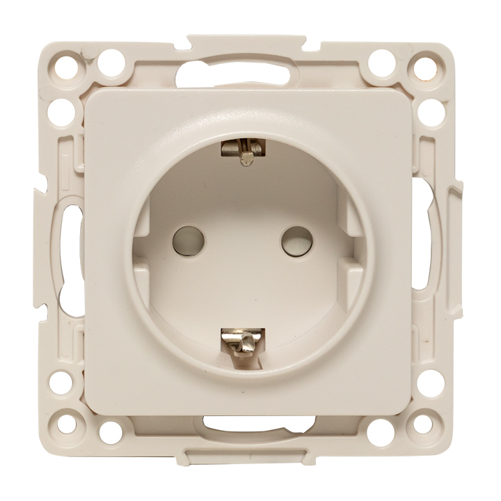 Розетка Стокгольм, со шторками, с заземлением, одинарная, безвинтовые клеммы, цвет - белый