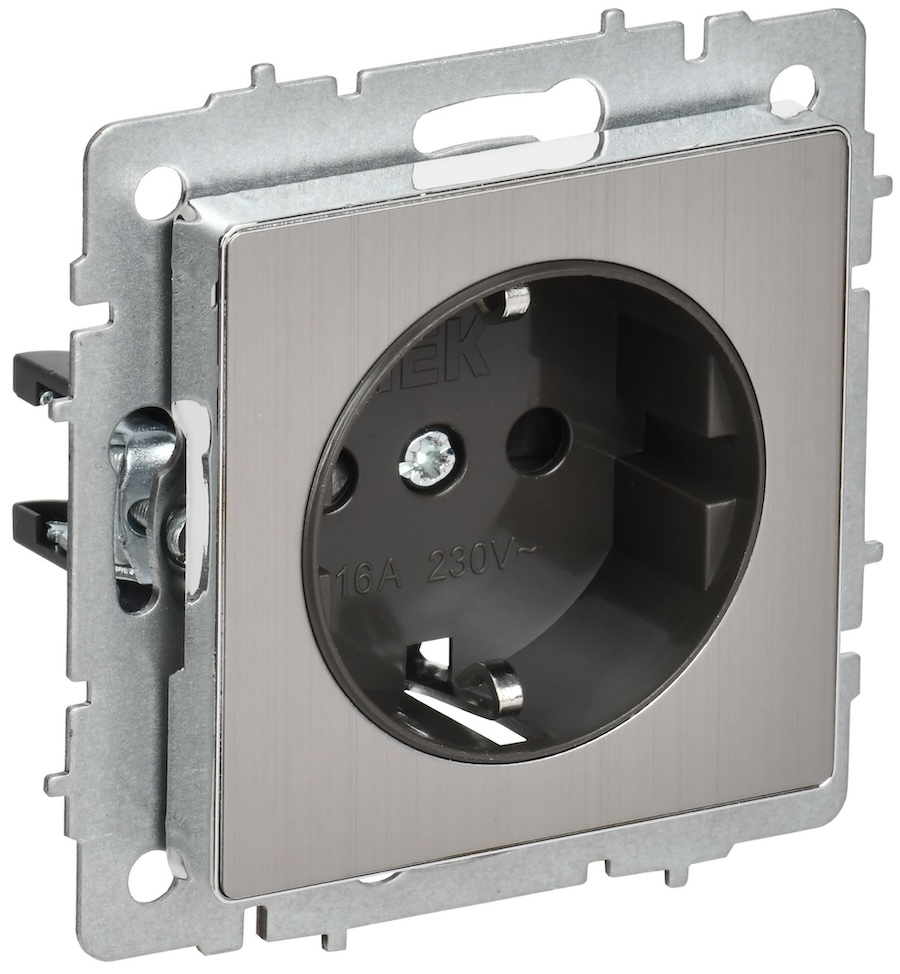 BRITE, без шторок, с заземлением, одинарная, винтовые клеммы, цвет - никель