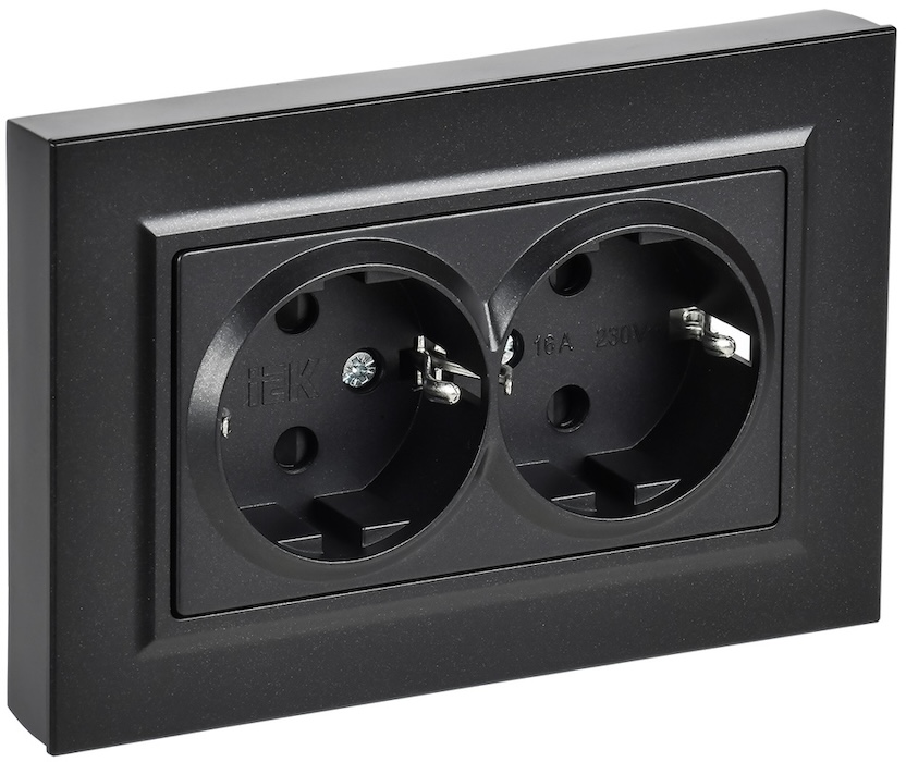 Розетка-моноблок BRITE, со шторками, с заземлением, двойная, винтовые клеммы, цвет - черный