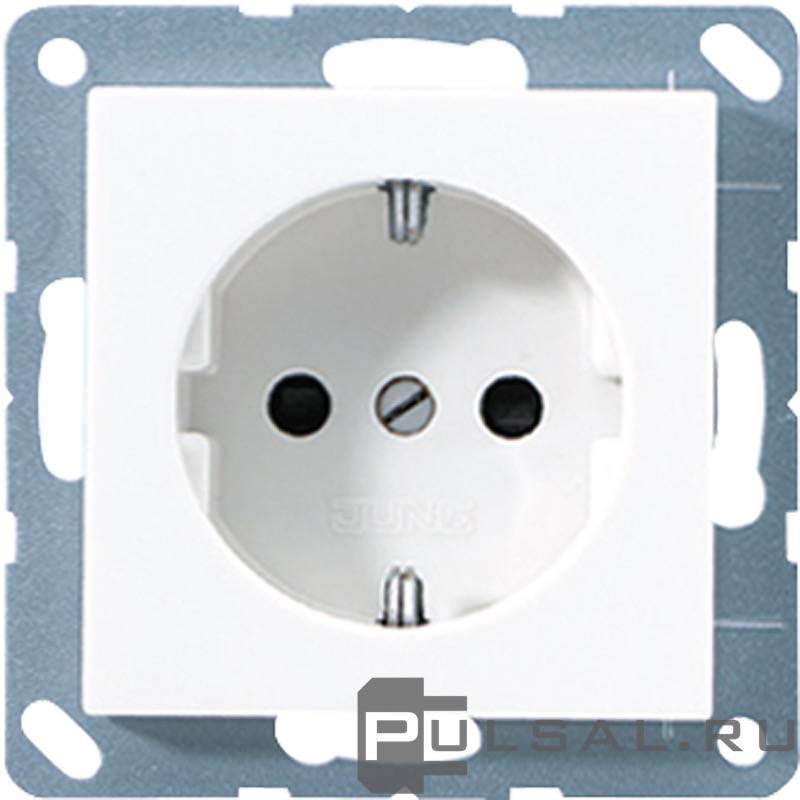 Розетка AS 500 Ударопрочная, со шторками, с заземлением, одинарная, безвинтовые клеммы, цвет - белый