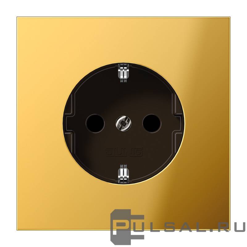 Розетка LS 990, без шторок, с заземлением, одинарная, безвинтовые клеммы, цвет - золотой