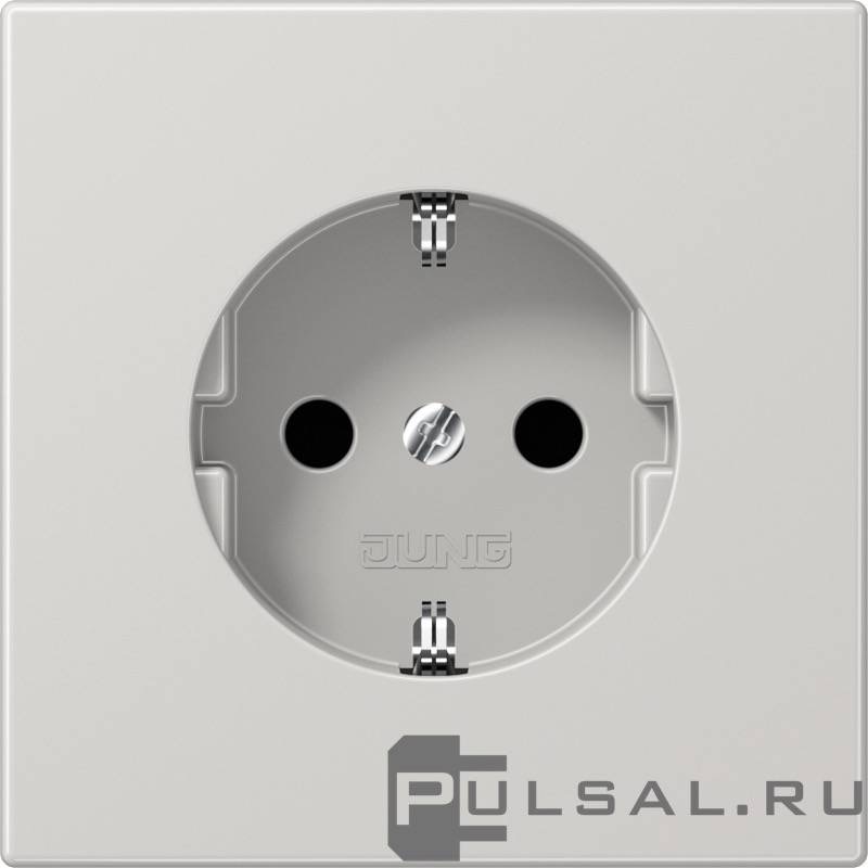 Розетка LS 990, LS-design, FD-design, со шторками, с заземлением, одинарная, безвинтовые клеммы, цвет - светло-серый