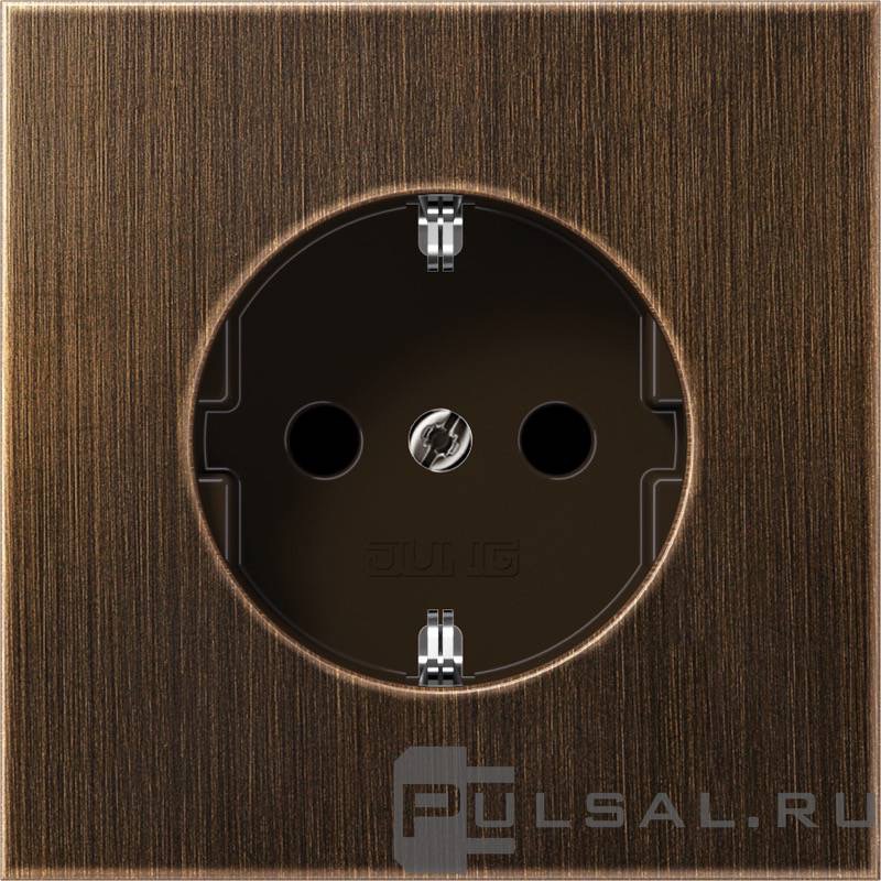 Розетка LS 990, LS ZERO, LS-design, FD-design, без шторок, с заземлением, одинарная, безвинтовые клеммы, цвет - латунь античная