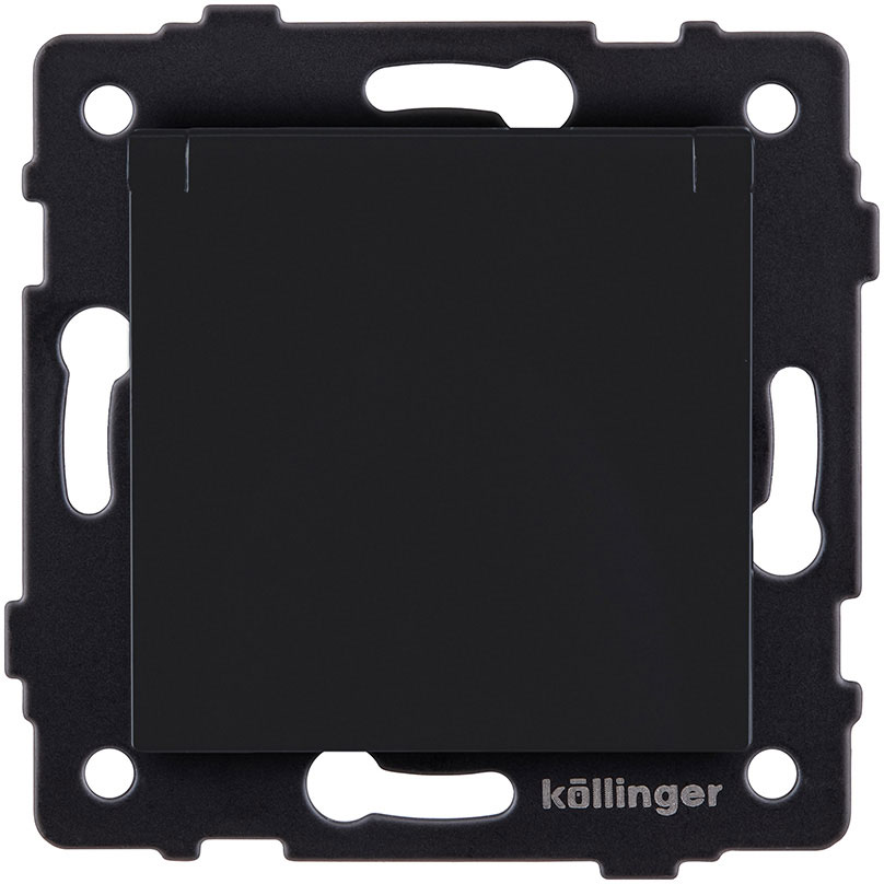 Розетка электрическая Aspekt, Eleganz, Reflex, с крышкой, с заземлением, одинарная, винтовые клеммы, цвет - Чёрный матовый