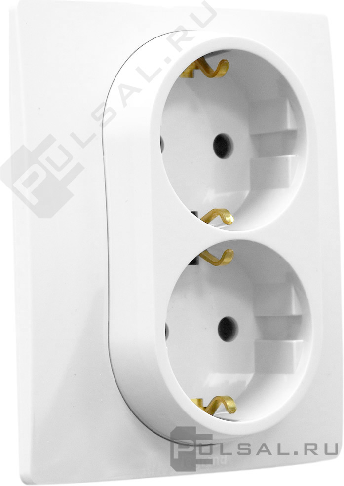 Розетка Etika Plus Etika, со шторками, с заземлением, двойная, безвинтовые клеммы, цвет - белый