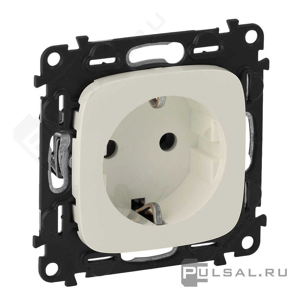 Умная розетка Netatmo, Valena Allure, со шторками, с заземлением, одинарная, безвинтовые клеммы, цвет - слоновая кость
