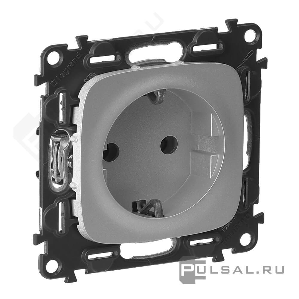 Розетка Valena Allure, без шторок, с заземлением, одинарная, безвинтовые клеммы, цвет - алюминий
