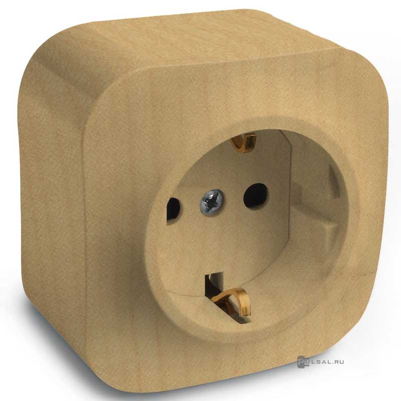 Quteo, со шторками, с заземлением, одинарная, винтовые клеммы, цвет - дерево