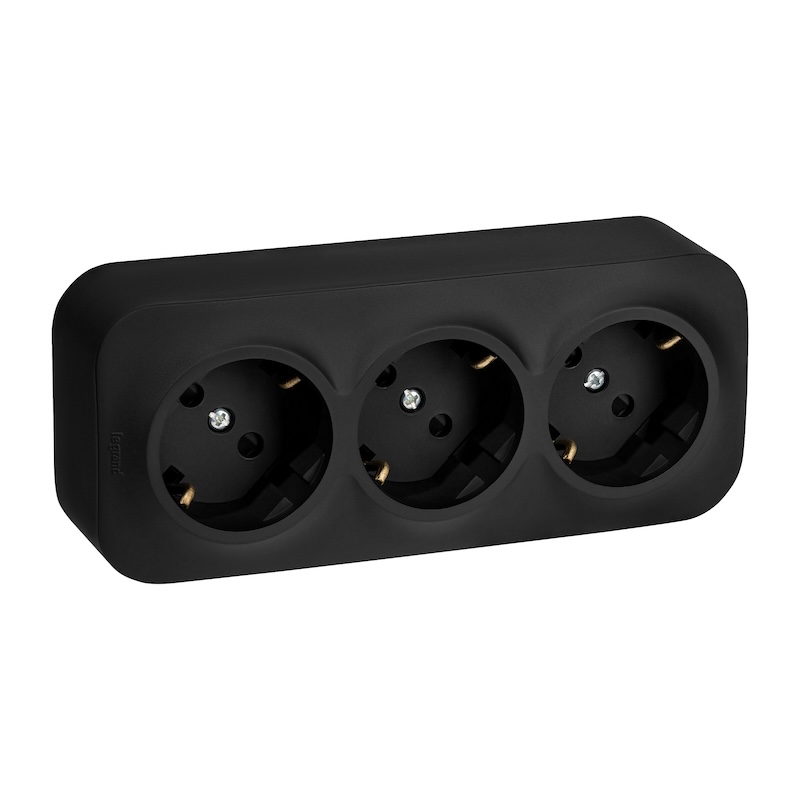 Quteo, без шторок, с заземлением, одинарная, винтовые клеммы, цвет - матовый черный