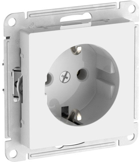 Розетка (безвинтовые клеммы) Atlas Design Antique, AtlasDesign Air, Atlas Design, без шторок, с заземлением, одинарная, безвинтовые клеммы, цвет - белый