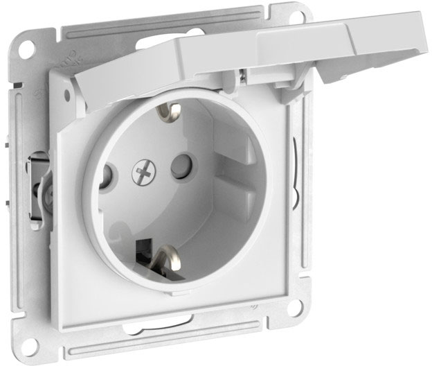 Розетка с выталкиванием вилки Atlas Design Antique, AtlasDesign Air, Atlas Design, со шторками, с заземлением, одинарная, винтовые клеммы, цвет - белый