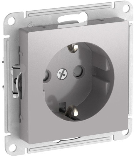 Розетка (безвинтовые клеммы) Atlas Design Antique, AtlasDesign Air, Atlas Design, со шторками, с заземлением, одинарная, безвинтовые клеммы, цвет - алюминий