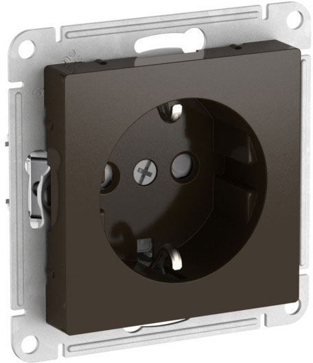 Розетка (безвинтовые клеммы) Atlas Design Antique, AtlasDesign Air, Atlas Design, со шторками, с заземлением, одинарная, безвинтовые клеммы, цвет - мокко