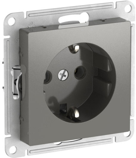 Розетка (безвинтовые клеммы) Atlas Design Antique, AtlasDesign Air, Atlas Design, без шторок, с заземлением, одинарная, безвинтовые клеммы, цвет - сталь