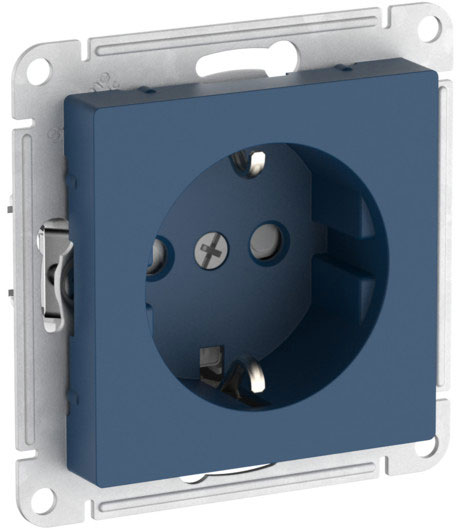 Розетка (безвинтовые клеммы) Atlas Design Antique, AtlasDesign Air, Atlas Design, со шторками, с заземлением, одинарная, безвинтовые клеммы, цвет - аквамарин