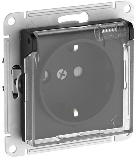 Розетка AQUA (безвинтовые клеммы) Atlas Design, со шторками, с заземлением, одинарная, безвинтовые клеммы, цвет - карбон