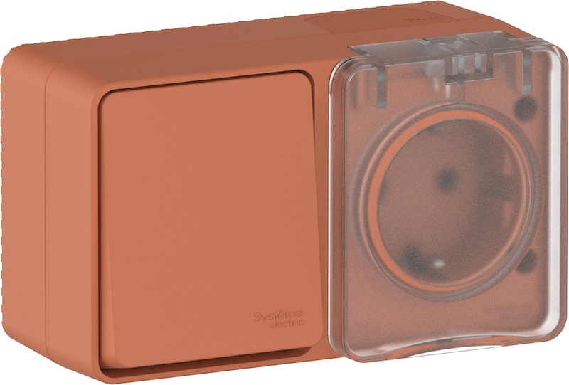 Atlas Design Profi 54, со шторками, с крышкой, с заземлением, одинарная, винтовые клеммы, цвет - терракотовый
