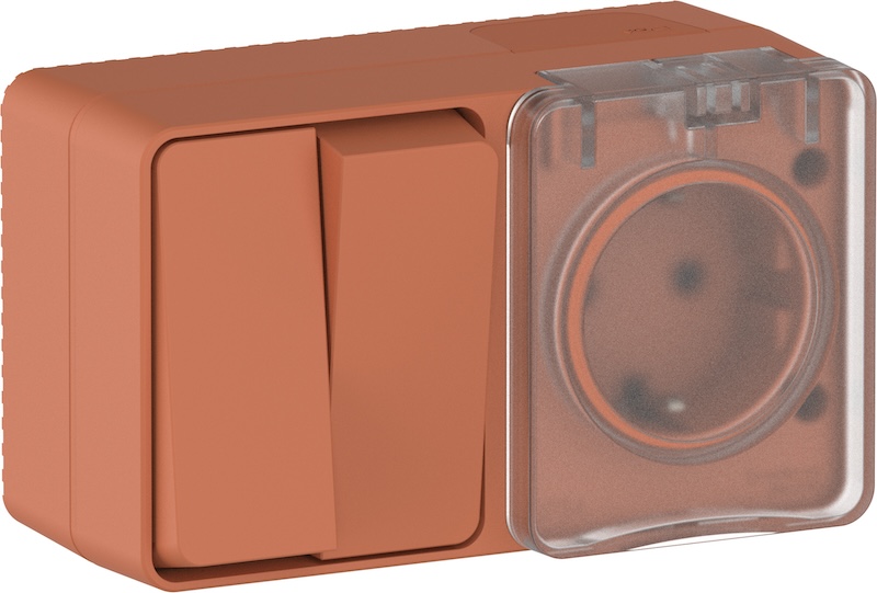 Atlas Design Profi 54, со шторками, с крышкой, с заземлением, одинарная, винтовые клеммы, цвет - терракотовый