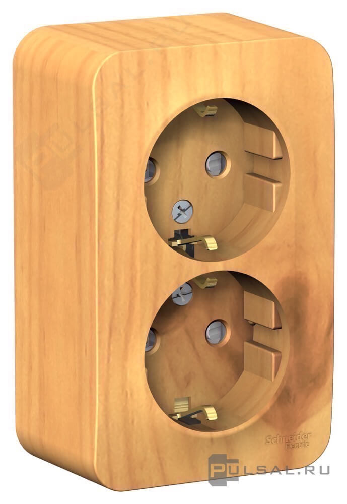 Розетка в одну монтажную коробку Blanca, со шторками, с крышкой, с заземлением, двойная, цвет - ясень