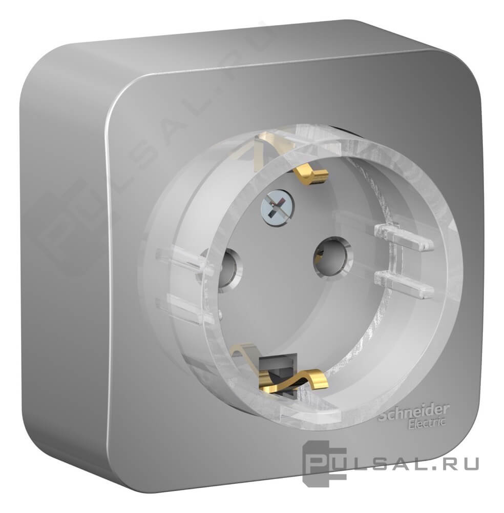 Розетка с рамкой Blanca, без шторок, с заземлением, одинарная, цвет - алюминий