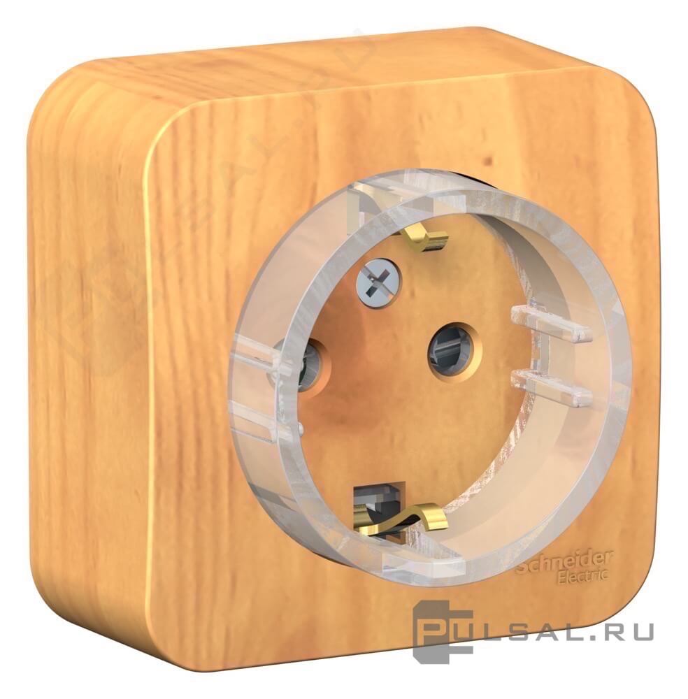 Розетка с изолирующей пластиной Blanca, без шторок, с заземлением, одинарная, цвет - ясень