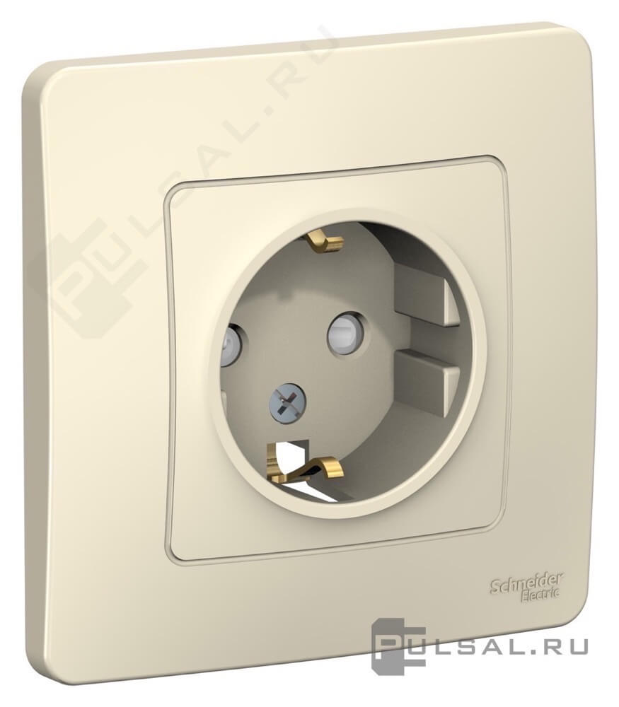 Розетка с рамкой Blanca, со шторками, с заземлением, одинарная, цвет - молочный