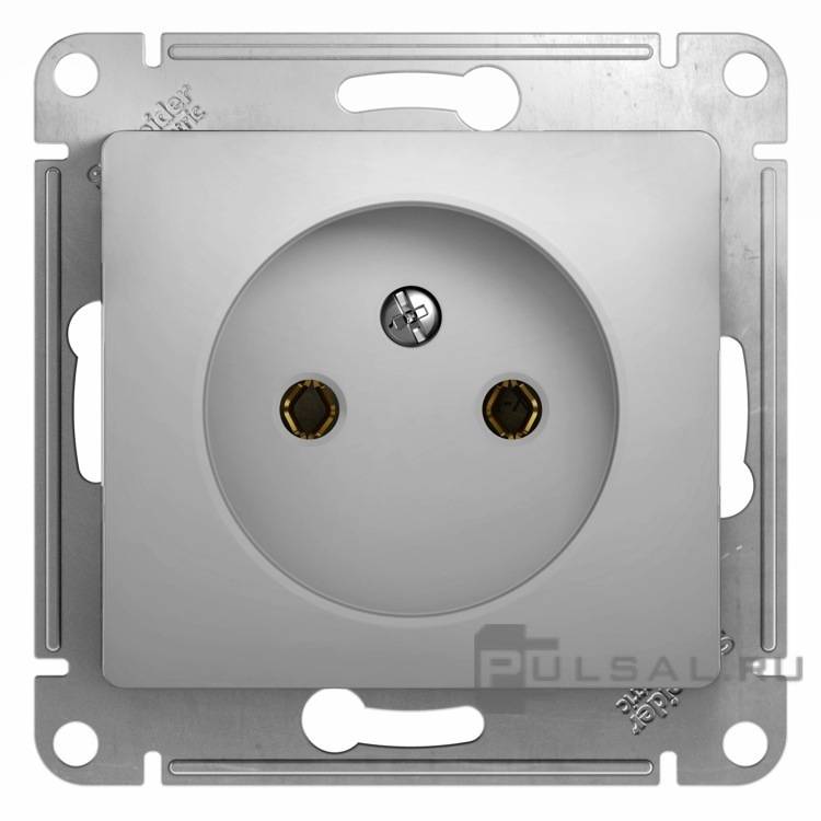 Кнопка Н.О. Glossa, одноклавишный, без подсветки, цвет - алюминий