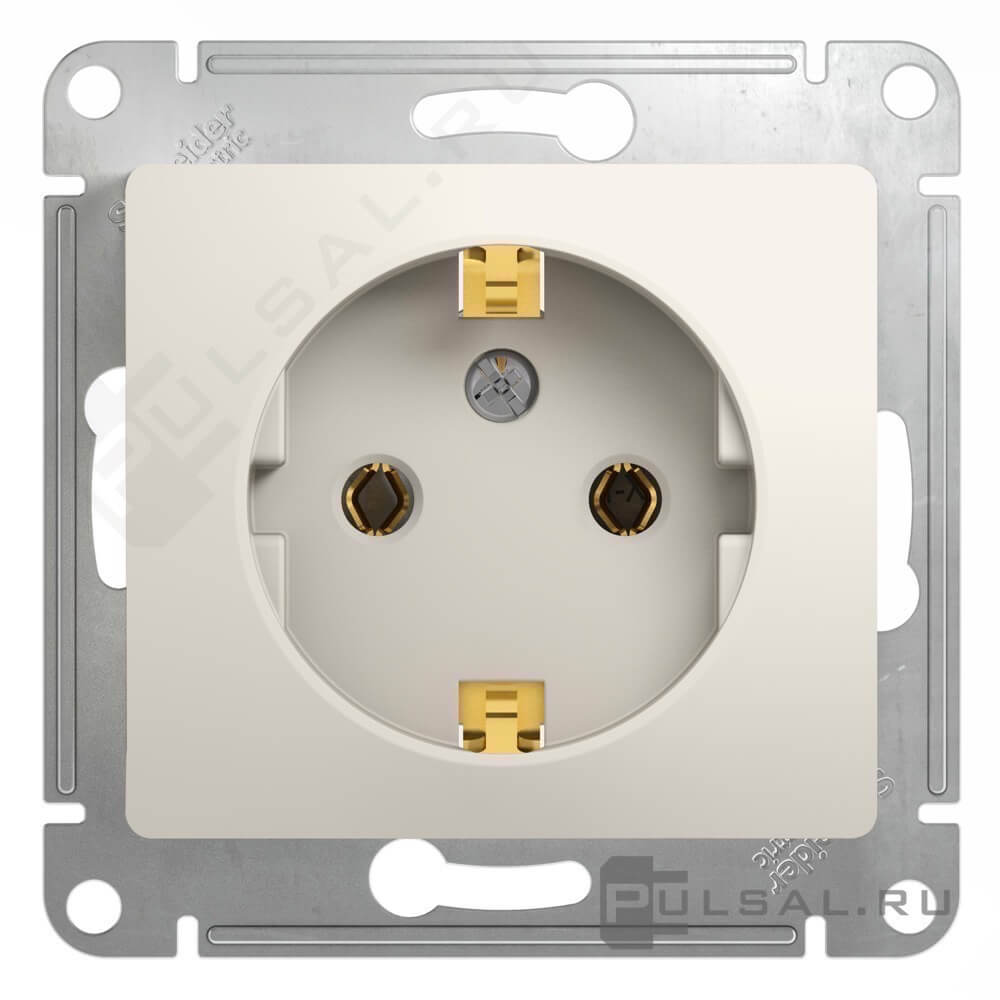 Розетка Glossa, без шторок, с заземлением, одинарная, винтовые клеммы, цвет - молочный