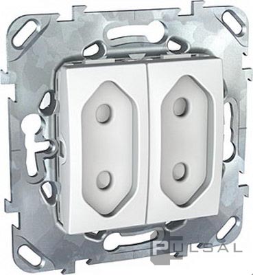Unica Базовая, Unica Хамелеон, Unica Quadro, со шторками, без заземления, двойная, винтовые клеммы, цвет - белый