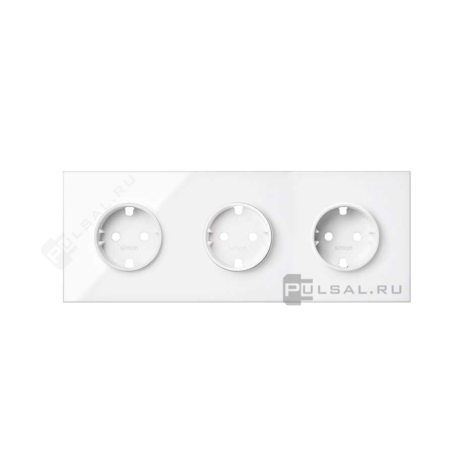 Simon 15, без шторок, с заземлением, двойная, винтовые клеммы, цвет - белый глянец