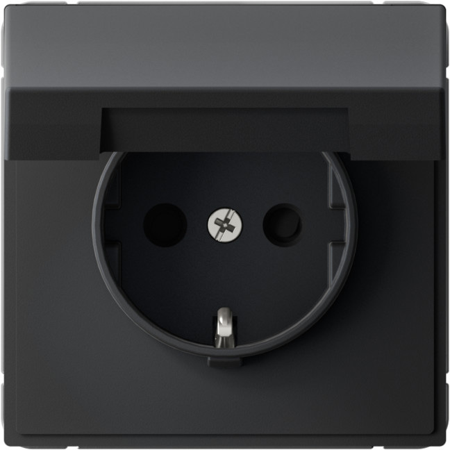 Розетка (безвинтовые клеммы) ArtGallery, ArtGallery Pure, со шторками, с крышкой, с заземлением, одинарная, безвинтовые клеммы, цвет - карбон