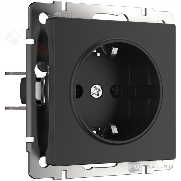 Розетка Alumax, Split, Slab, Senso, Baguette, Acrylic, Platinum, Elite, Snabb, Stream, Flock, Stark, Fiore, Favorit, Diamant, Aluminium, Antik, Metallic, со шторками, с заземлением, одинарная, винтовые клеммы, цвет - черный