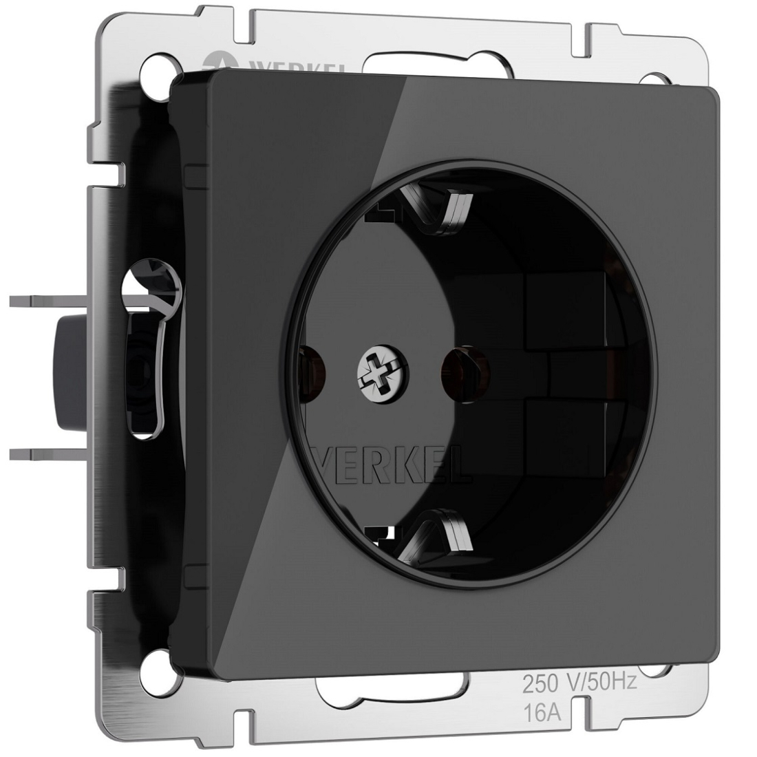 Розетка Alumax, Split, Slab, Senso, Baguette, Acrylic, Platinum, Elite, Snabb, Stream, Flock, Stark, Fiore, Favorit, Diamant, Aluminium, Antik, Metallic, со шторками, с заземлением, одинарная, винтовые клеммы, цвет - черный акрил