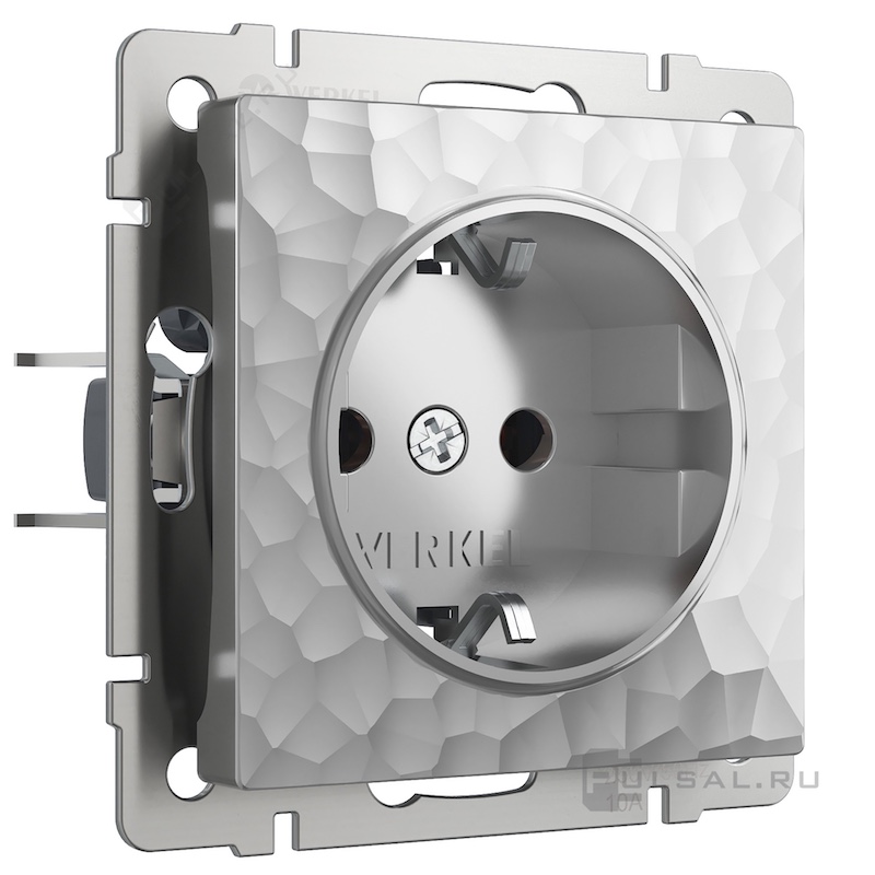 Розетка Hammer, со шторками, с заземлением, одинарная, винтовые клеммы, цвет - серебряный